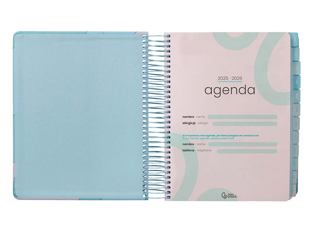 Agenda escolar liderpapel 25-26 espiral zante dia pagina a6 bilingüe papel fsc 80 gr