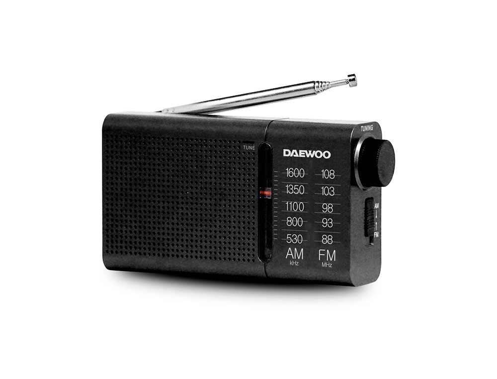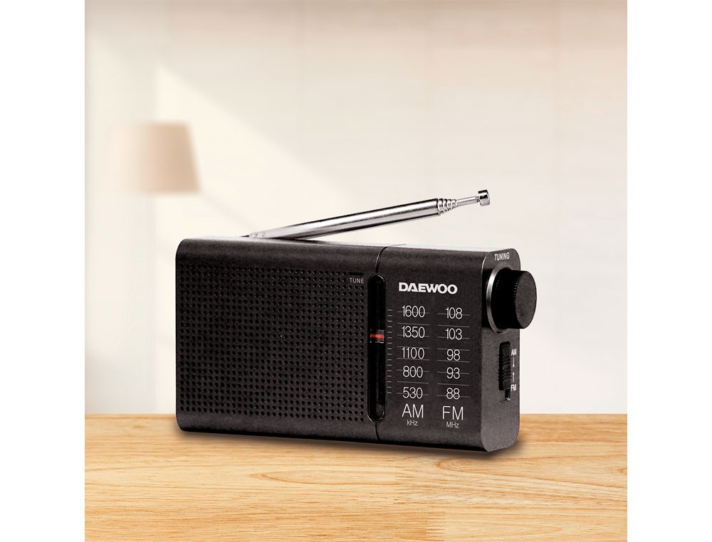 Radio portatil daewoo am/fm antena telescopica auriculares incluidos jack 3.5 mm color negro