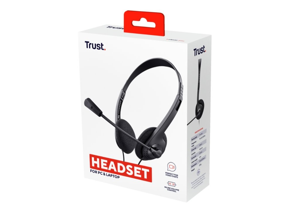 Auricular trust basics con microfono ajustable jack 3.5 longitud cable 180 cm color negro