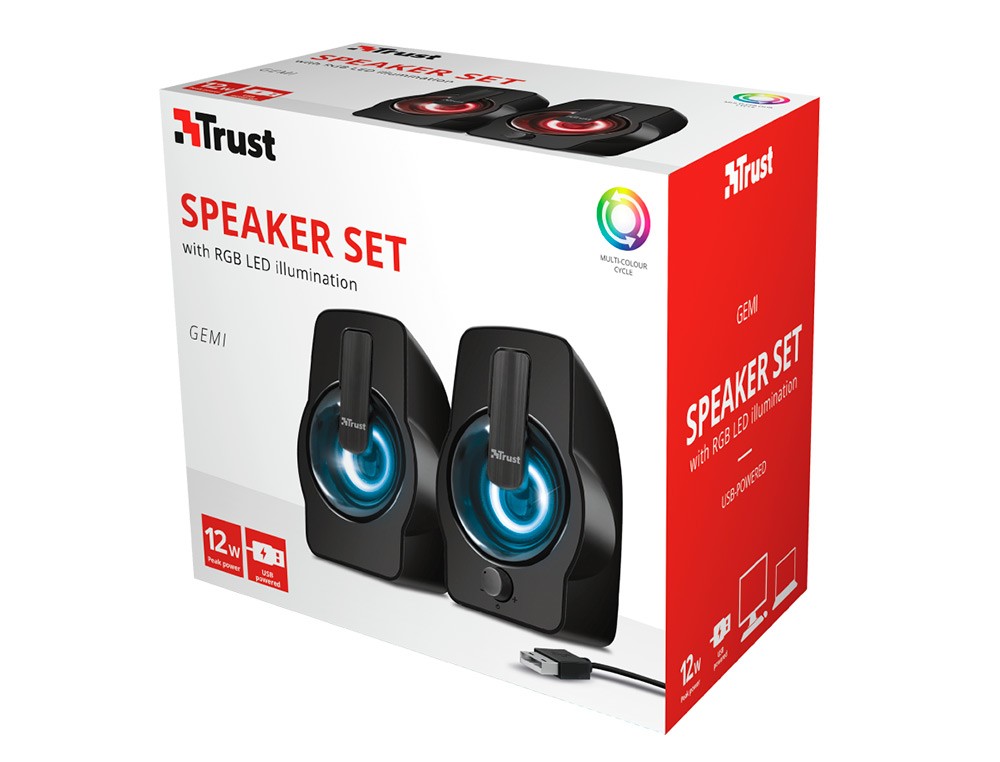 Altavoces trust gemi 2.0 potencia maxima 12w iluminacion led control de volumen y conexion