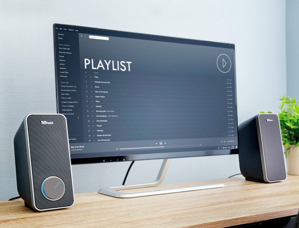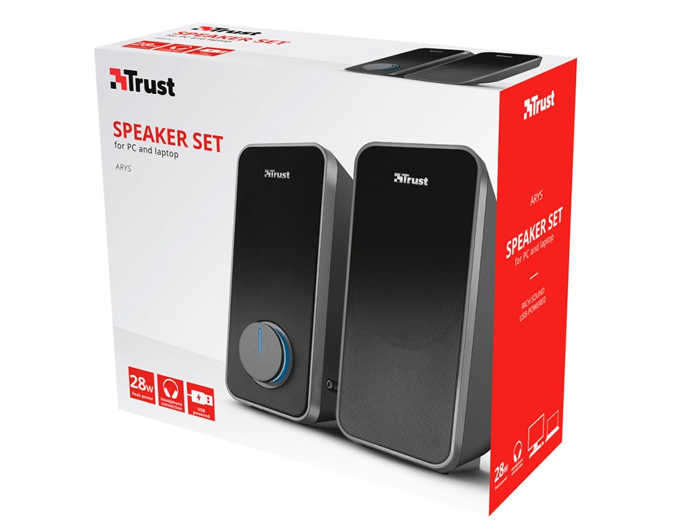 Altavoces trust arys 2.0 potencia maxima 28w control de volumen y conexion auriculares usb color negro