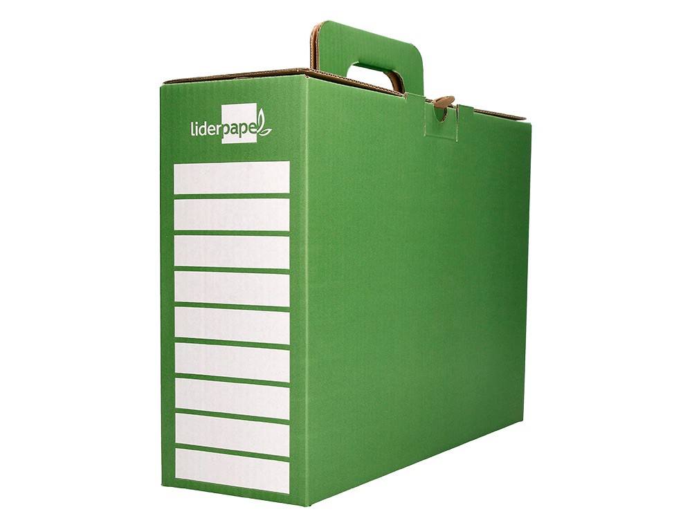 LiderpapelCaja archivador definitivo liderpapel carton reforzado con asa color verde cheque libro 393x120x279mm