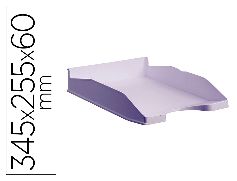 Bandeja de sobremesa sostenible Archivo 2000 Ecogreen pastel. Fabricado en poliestireno 100% reciclado y reciclable. Válida para formatos A4 y folio. Apilable en 3 posiciones, de forma vertical o escalonadamente. Hendidura frontal para facilitar el acceso a la documentación. Color malva pastel. Medidas exteriores: 345x255x60 mm. Fabricado en España.
