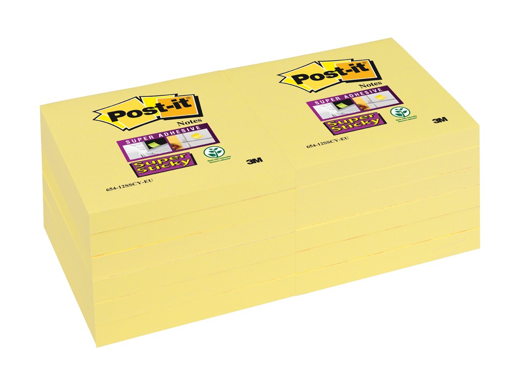 Bloc de notas adhesivas quita y pon post-it super sticky 76x127 mm con 12 bloc amarillo canario