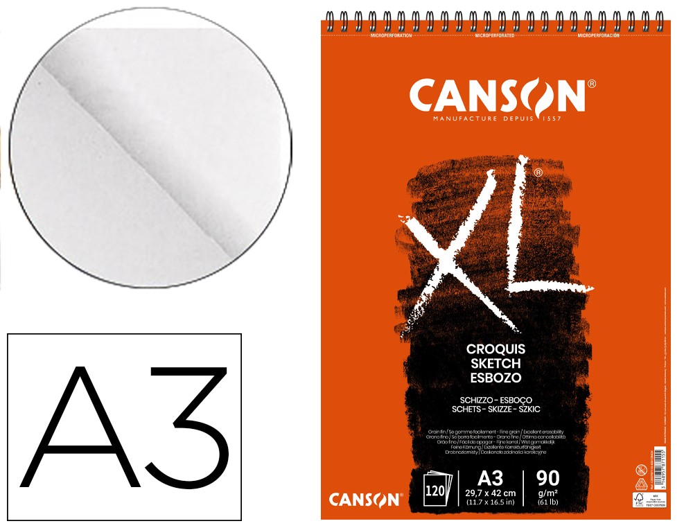 Bloc dibujo croquis din a3 microperforado 29,7x42 cm 120 hojas grano fino 90 g