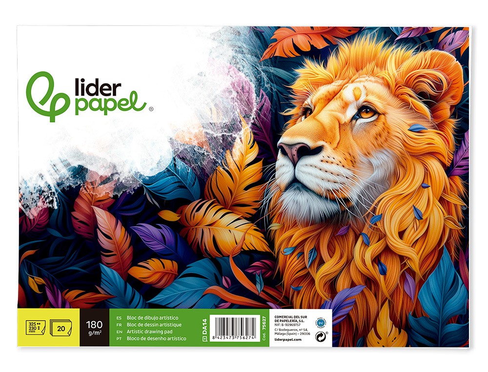 Bloc dibujo liderpapel artistico encolado 230x325mm 20 hojas 180 g/m2 sin recuadro