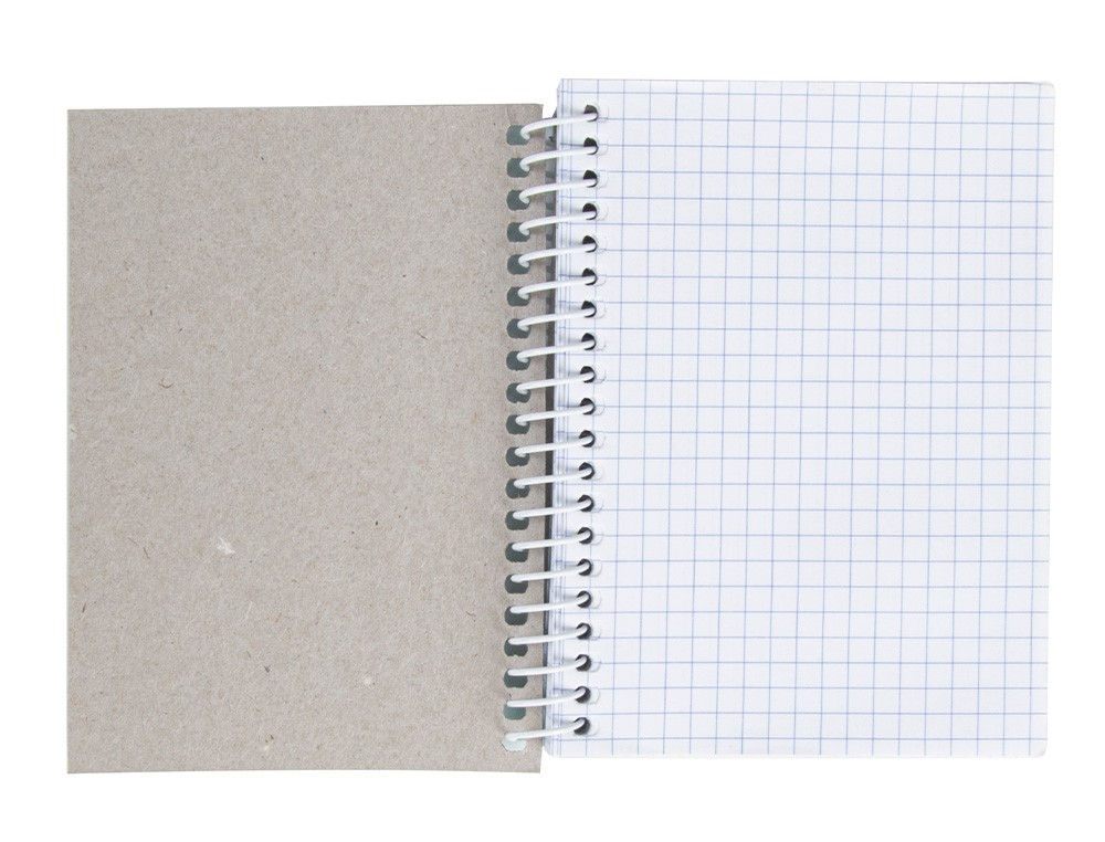 Tapa de cartoncillo de 400 g/m² impresa y plastificada en polietileno brillo. Contratapa de cartoncillo de 400 g/m². 80 hojas. Papel de 60 g/m². Espiral nylonizada blanca. Sin margen. Cuadrícula de 4 mm. Colores surtidos.