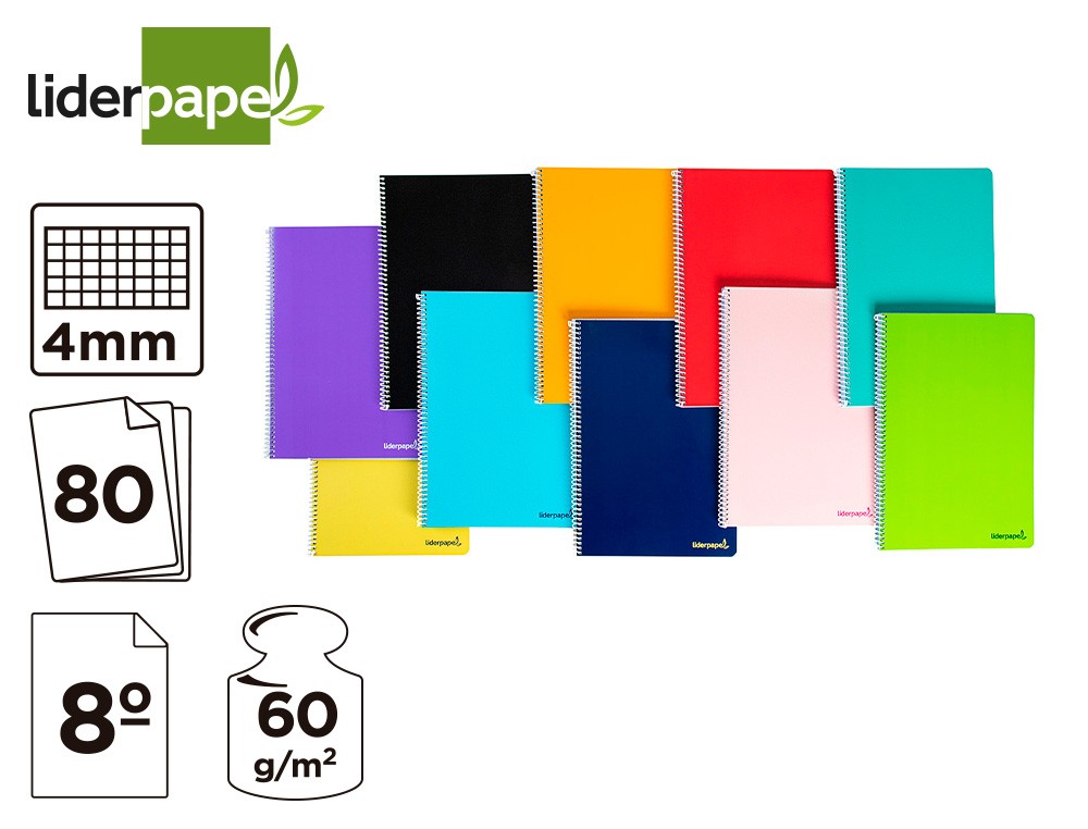 Cuaderno espiral liderpapel bolsillo octavo smart tapa blanda 80h 60gr cuadro 4mm colores surtidos