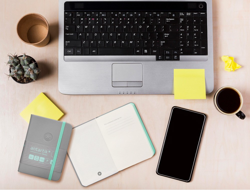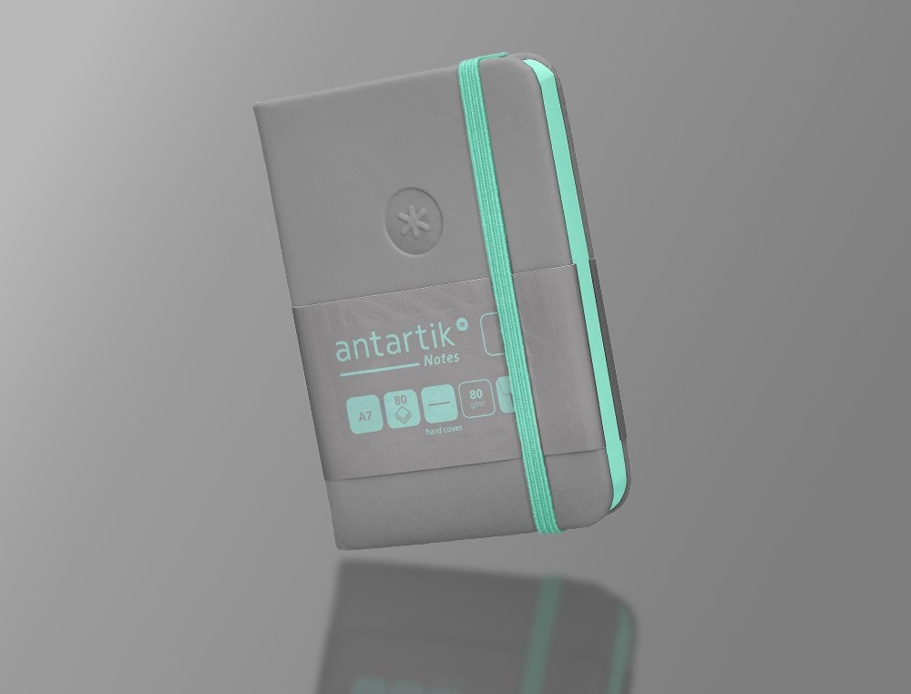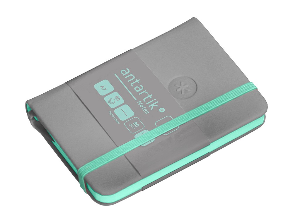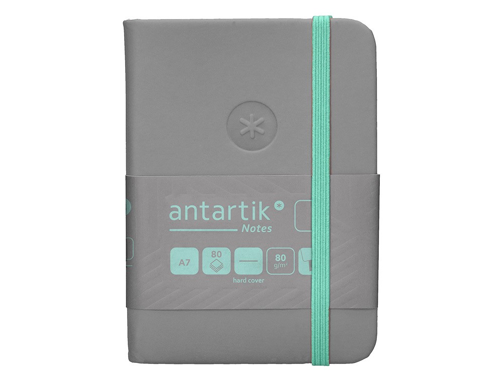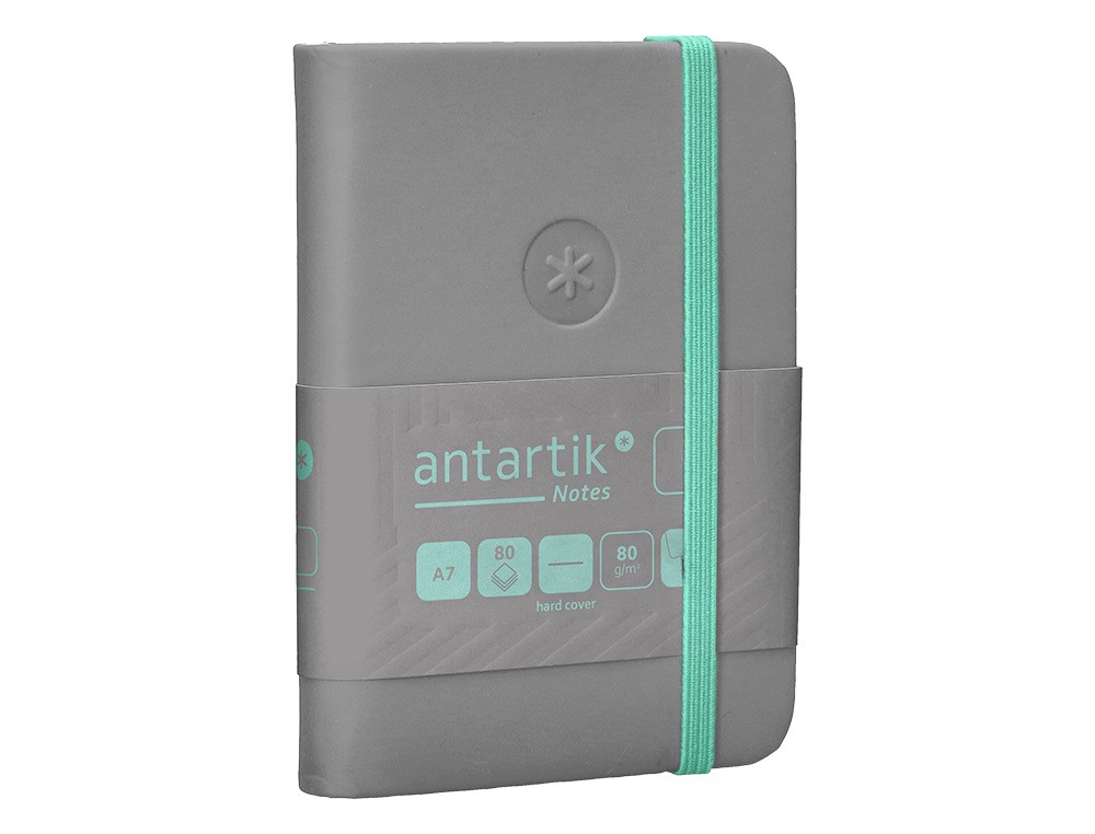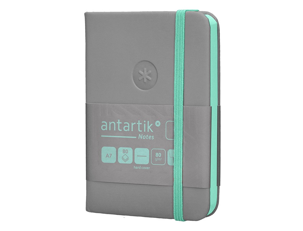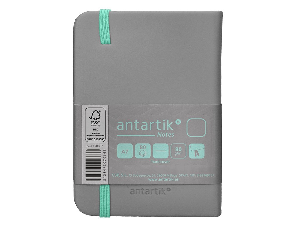 Cuaderno con gomilla antartik notes tapa dura a7 hojas lisas gris y turquesa 80 hojas 80 gr fsc