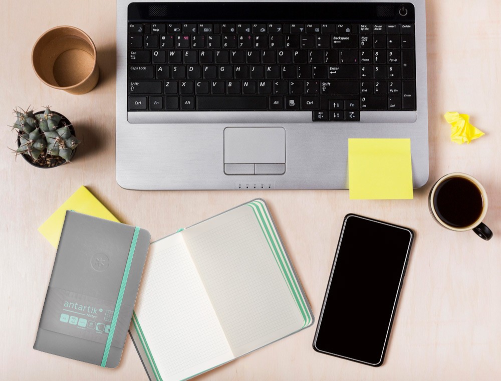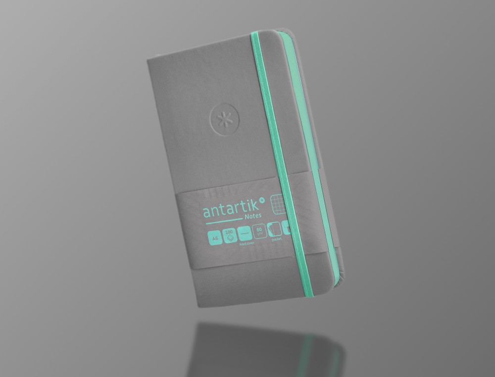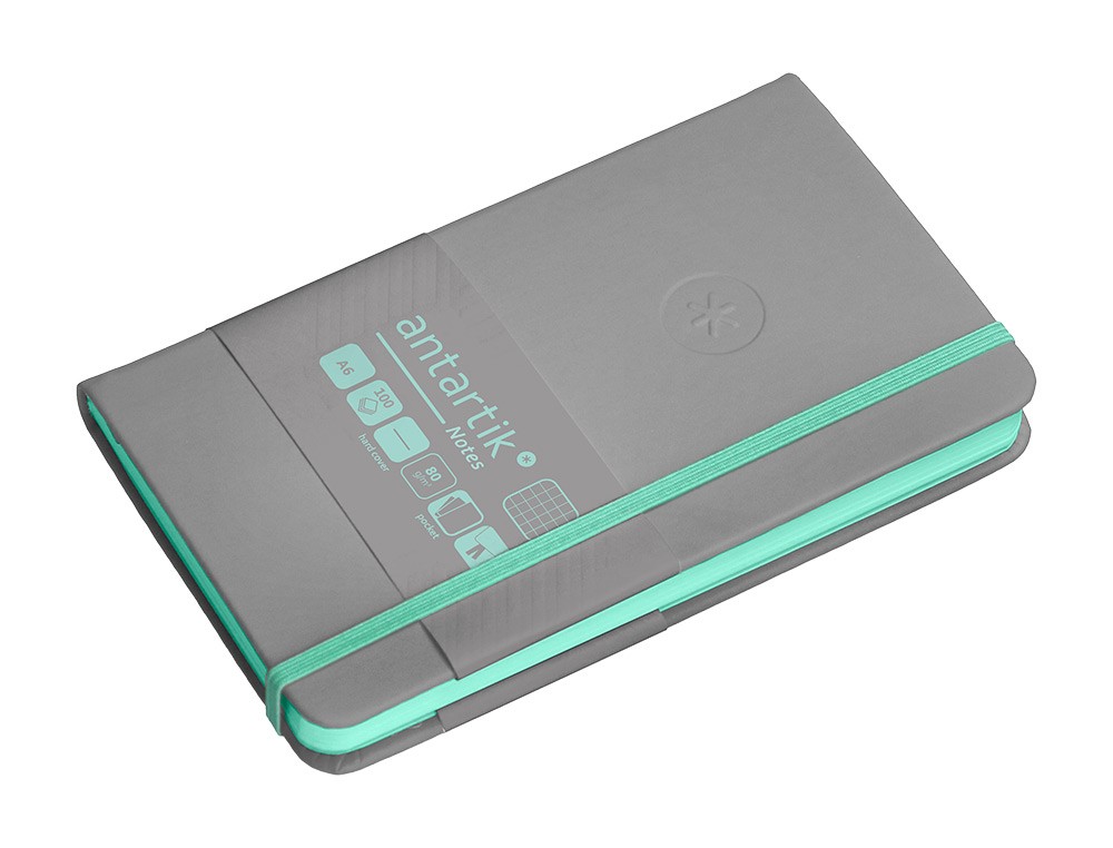 Cuaderno con gomilla antartik notes tapa dura a6 hojas cuadricula gris y turquesa 100 hojas 80 gr fsc