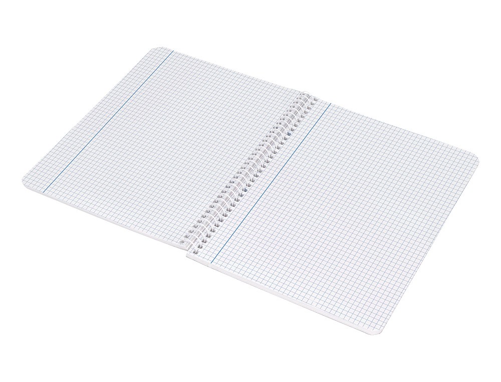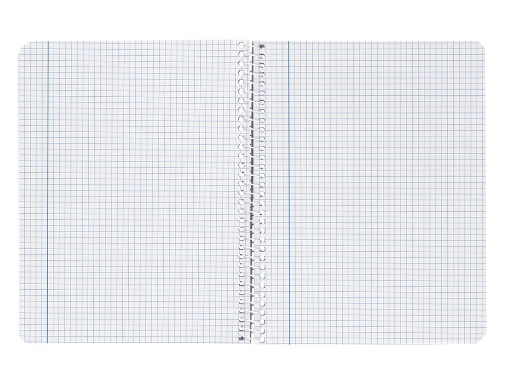 Tapa de cartón de 800 g/m² contracolado, impresa y plastificada mate. Gran resistencia y rigidez. Papel de 75 g/m². Espiral nylonizada. Coil-lock. Colores surtidos.