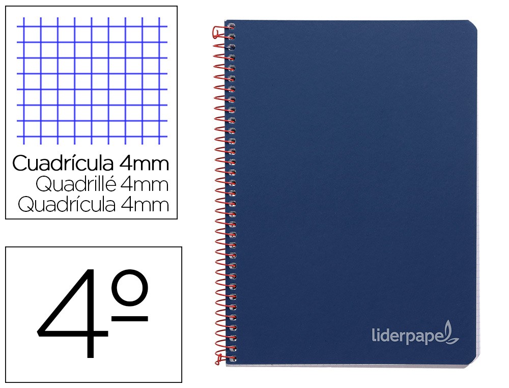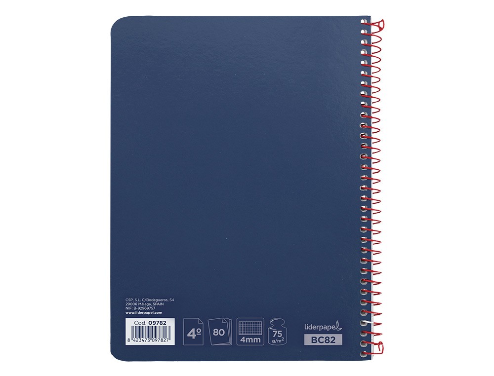 Cuaderno espiral liderpapel cuarto witty tapa dura 80h 75gr cuadro 4mm con margen color azul marino