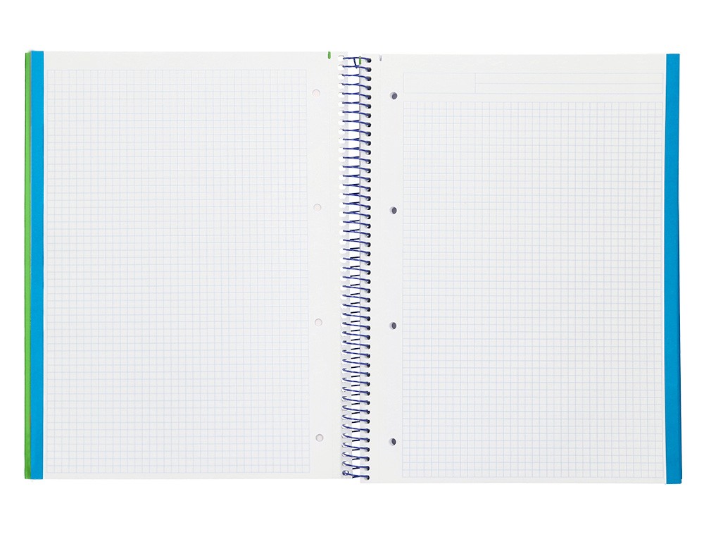 Cuaderno espiral liderpapel a4 micro wonder tapa plastico 120h 90gr cuadro 5mm 5 bandas 4 taladros color verde oscuro