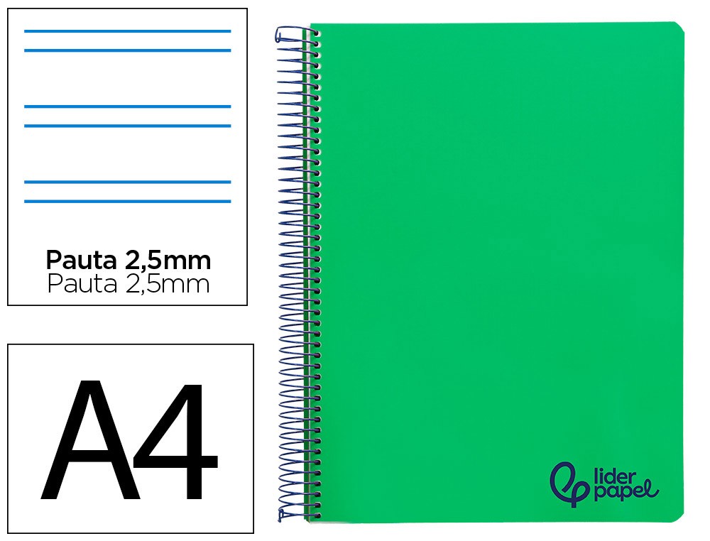 Cuaderno espiral liderpapel a4 wonder tapa plastico 80h 90gr pauta estrecha 2,5mm con margen color verde oscuro