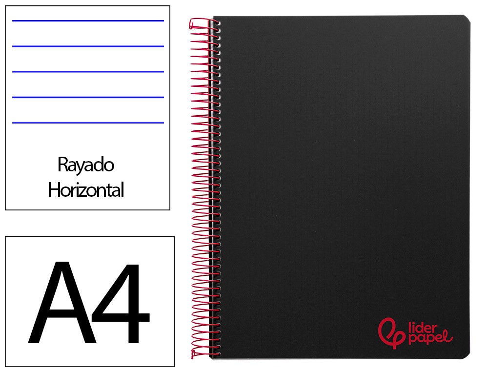 Cuaderno espiral liderpapel a4 wonder tapa plastico 80h 90gr rayado horizontal con margen color negro