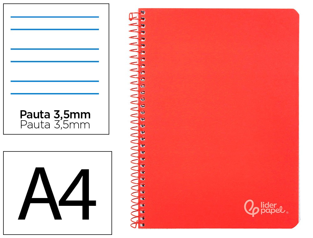 Cuaderno espiral liderpapel a4 witty tapa dura 80h 90gr pauta 3,5mm con margen color rojo