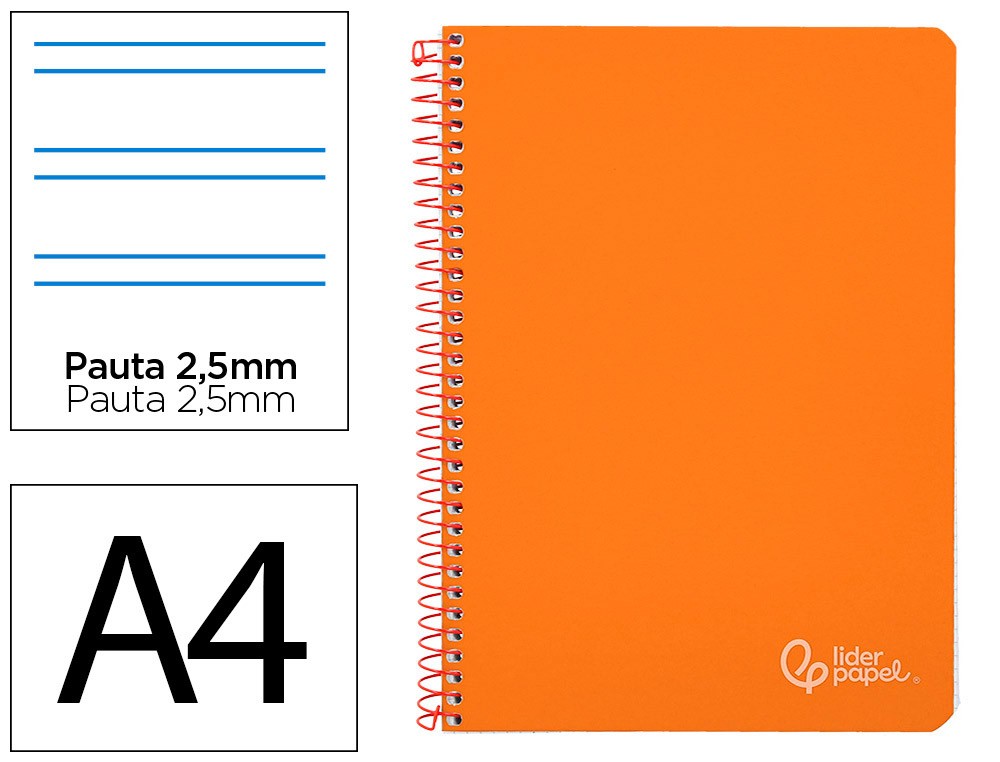 Cuaderno espiral liderpapel a4 witty tapa dura 80h 90gr pauta 2,5mm con margen color naranja