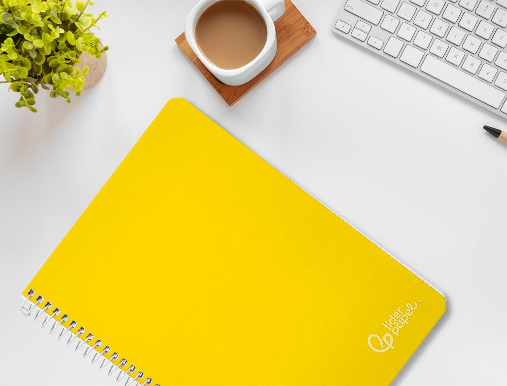 Cuaderno espiral liderpapel a4 witty tapa dura 80h 90gr rayado horizontal con margen color amarillo