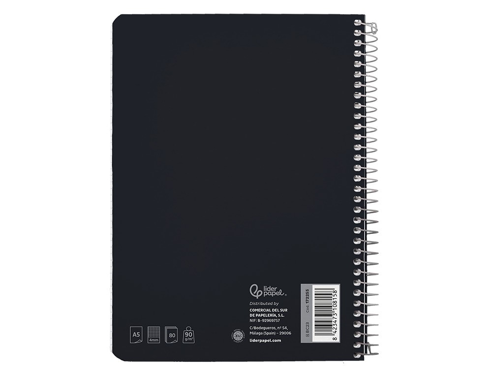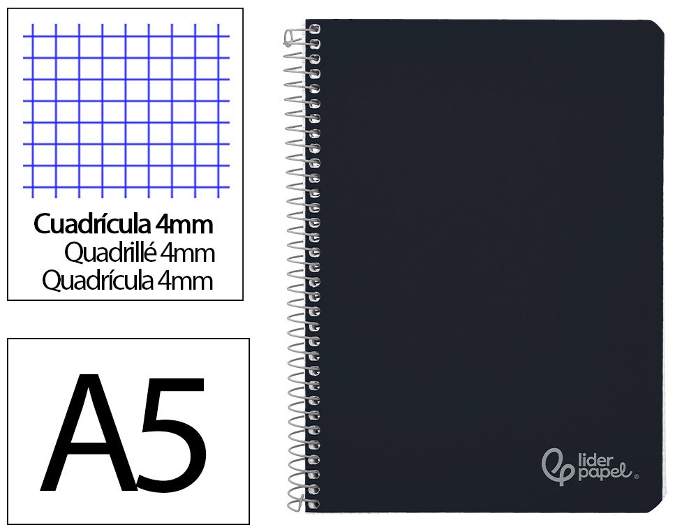 Cuaderno espiral liderpapel a5 witty tapa dura 80h 90gr cuadro 4mm con margen color negro