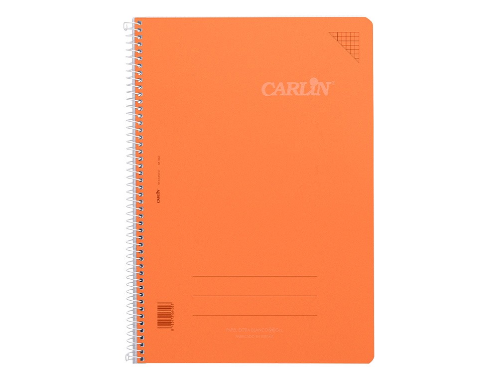 Cuaderno espiral Carlin con tapa y contratapa de plastico resistente. DinA4. 80 hojas. 90gr. La tinta no traspasa. Cuadro 4 mm con margen. Espiral nylonizada y coil-lock. Color NARANJA