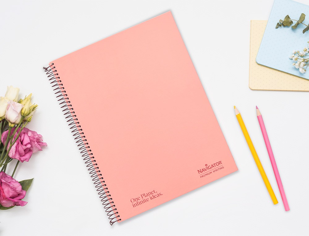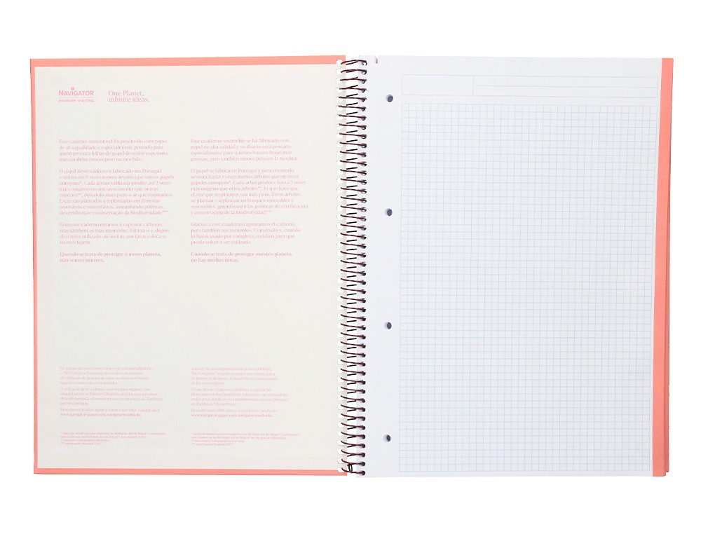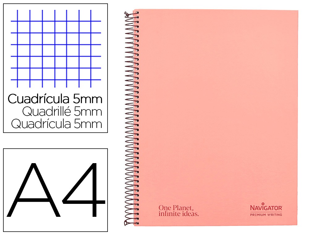Cuaderno espiral navigator a4 micro tapa forrada 80h 80gr cuadro 5mm 1 banda color coral