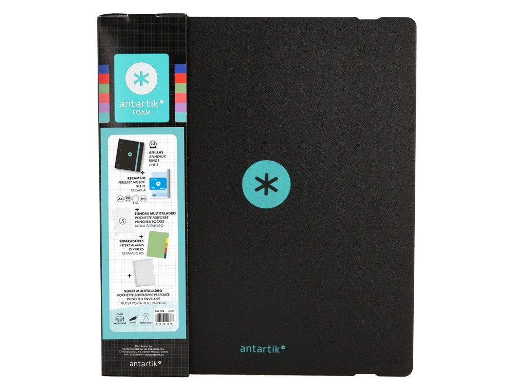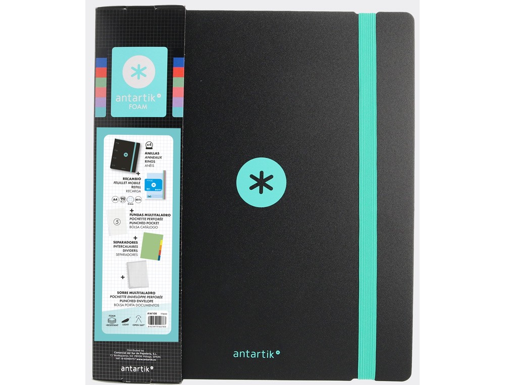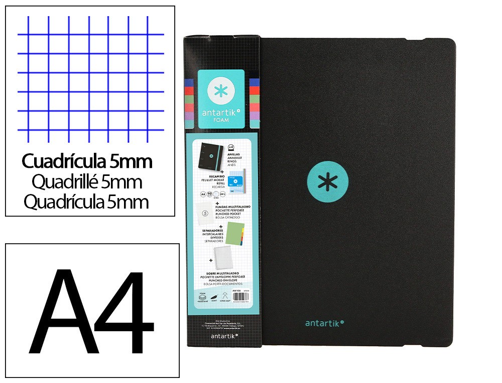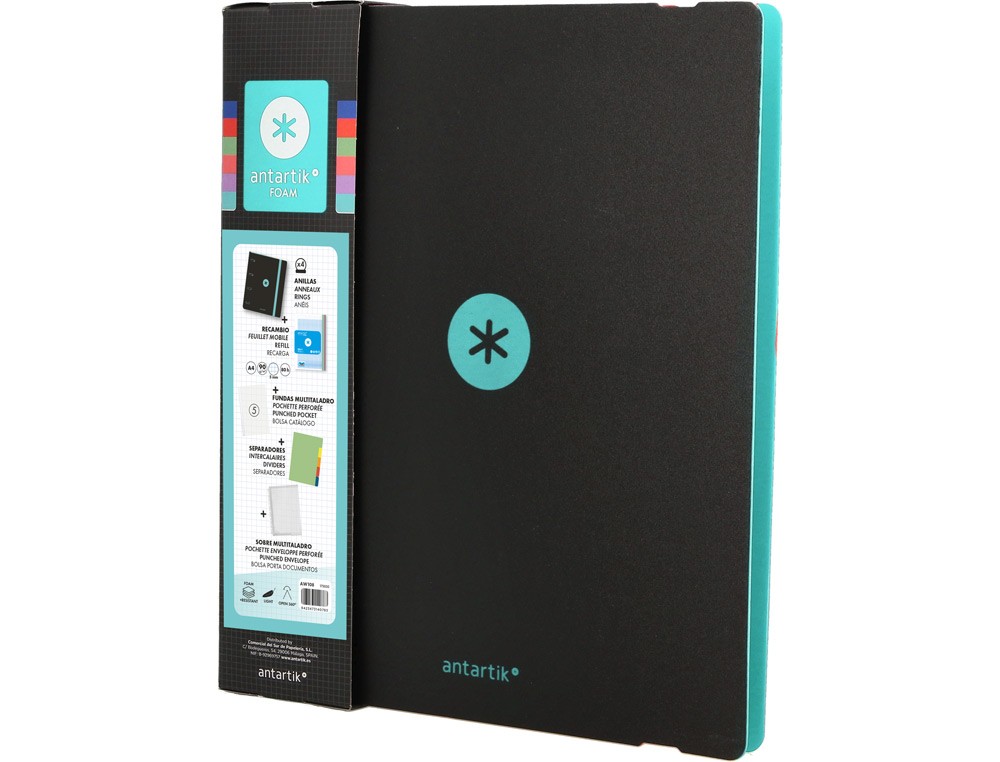Carpeta con recambio antartik a4 cuadro 5mm foam 4 anillas 35mm mixtas bicolor negro menta