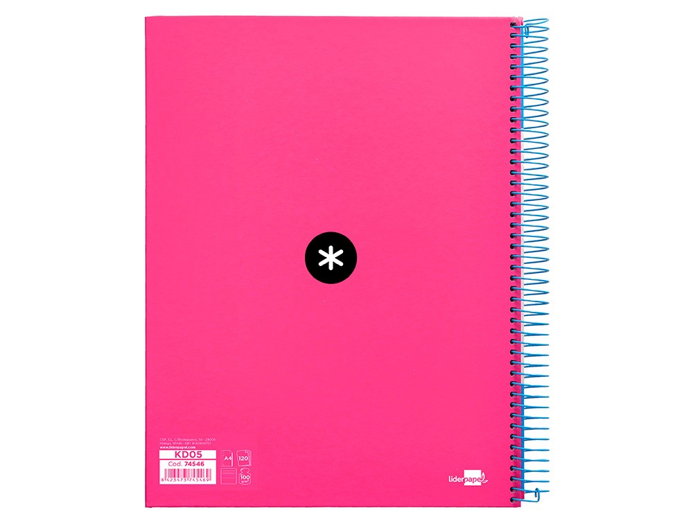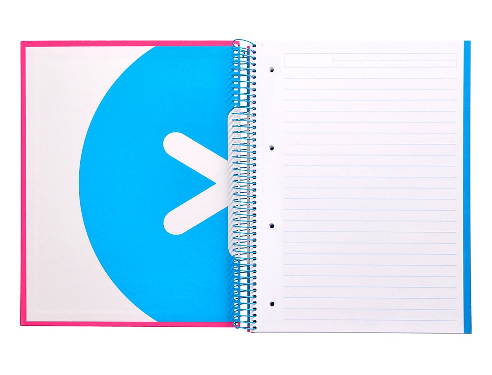 El cuaderno de más alta gama del mercado: exclusivo diseño, características inigualables, un cuaderno sin precedentes que se distingue por la suavidad y blancura de su papel, y además hace la escritura muy fluida. Tapa de cartón entrecolado de 1,5 mm de espesor, forrado a una cara con papel estucado mate extrasuave y reserva de barniz UVI. Guarda interior impresa. 100 y 120 hojas. Gran resistencia y rigidez. Papel extrablanco de 90 g/m², u ltrasuave que hace la escritura mucho más fluida. La tinta no traspasa. 4 bandas de colores (formato A6) y 5 bandas de colores (formatos A5 y A4). Espiral nylonizada de colores. Coil-lock.
