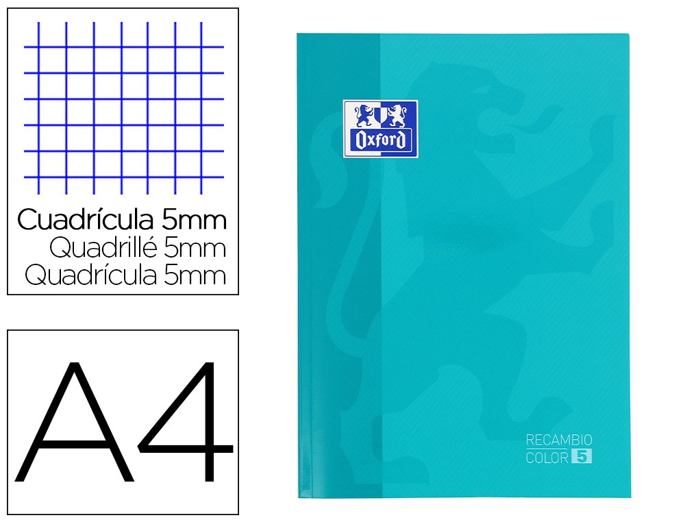 Recambio color oxford din a4 80 hojas 90 gr optik paper cuadros 5mm 4 taladros