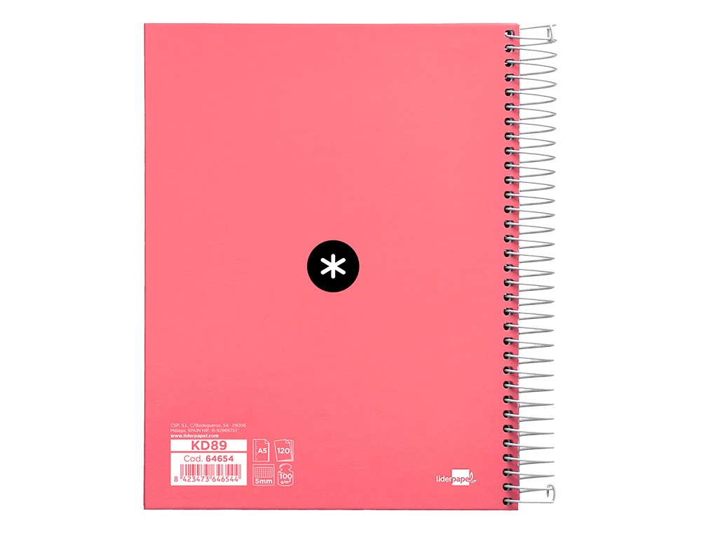 Cuaderno espiral a5 micro antartik tapa forrada120h 90 gr cuadro 5 mm 5 band 6 taladros color coral
