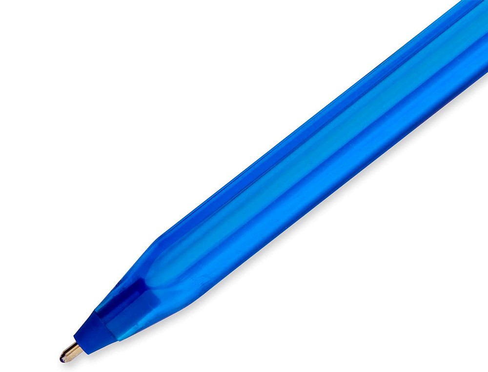 Bolígrafo con capuchón y tinta a base de aceite. Sistema ULV que proporciona el más alto nivel de suavidad y deslizamiento nunca visto. Sin borrones. Cuerpo triangular. Punta de 1 mm. Trazo de 0,4 mm.
