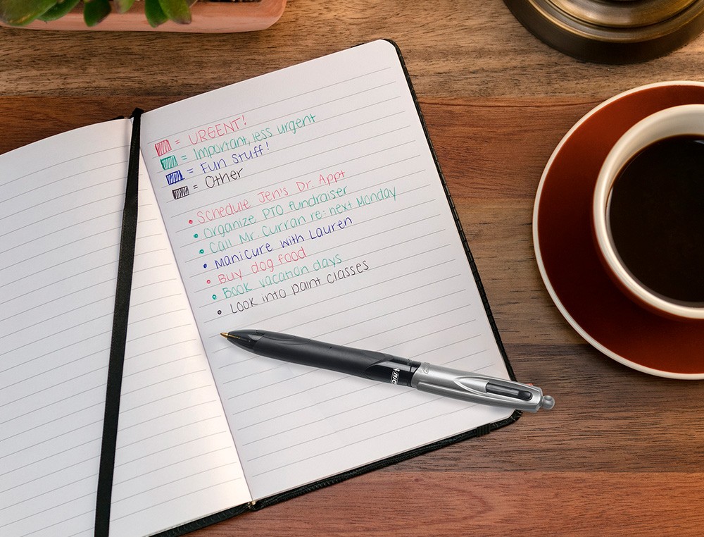 Boligrafo bic cuatro colores con grip colore negro punta 1 mm