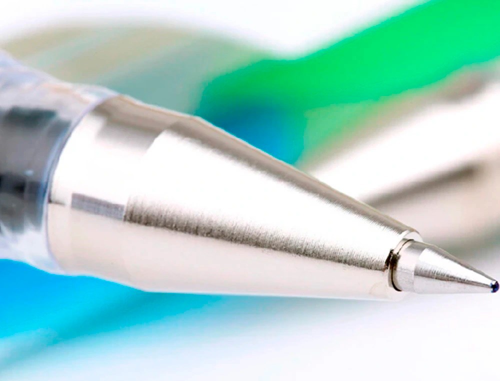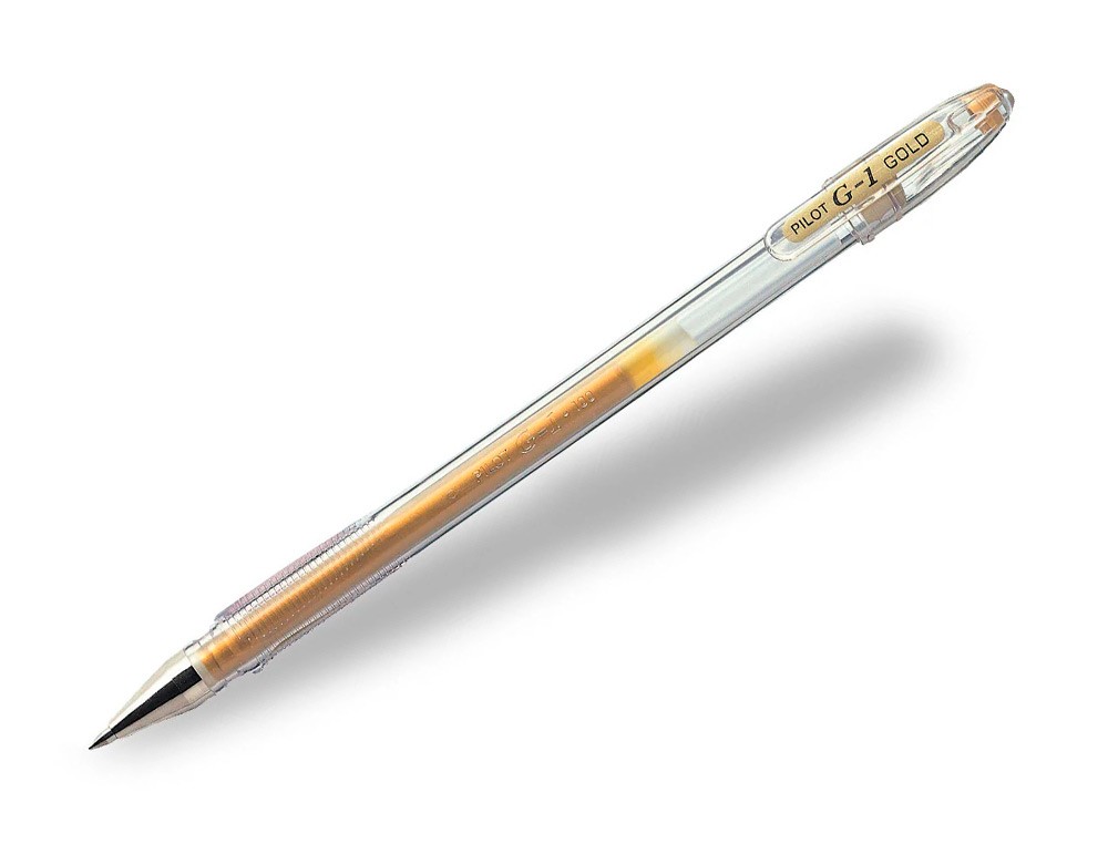 Bolígrafo con tinta gel pigmentada. Cuerpo transparente que permite ver elnivel de la tinta. Punta de bola de acero inoxidable. Punta de 0,5 mm. Tr azo de 0,3 mm. Color oro.