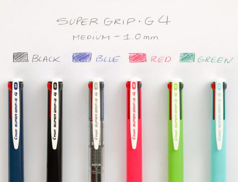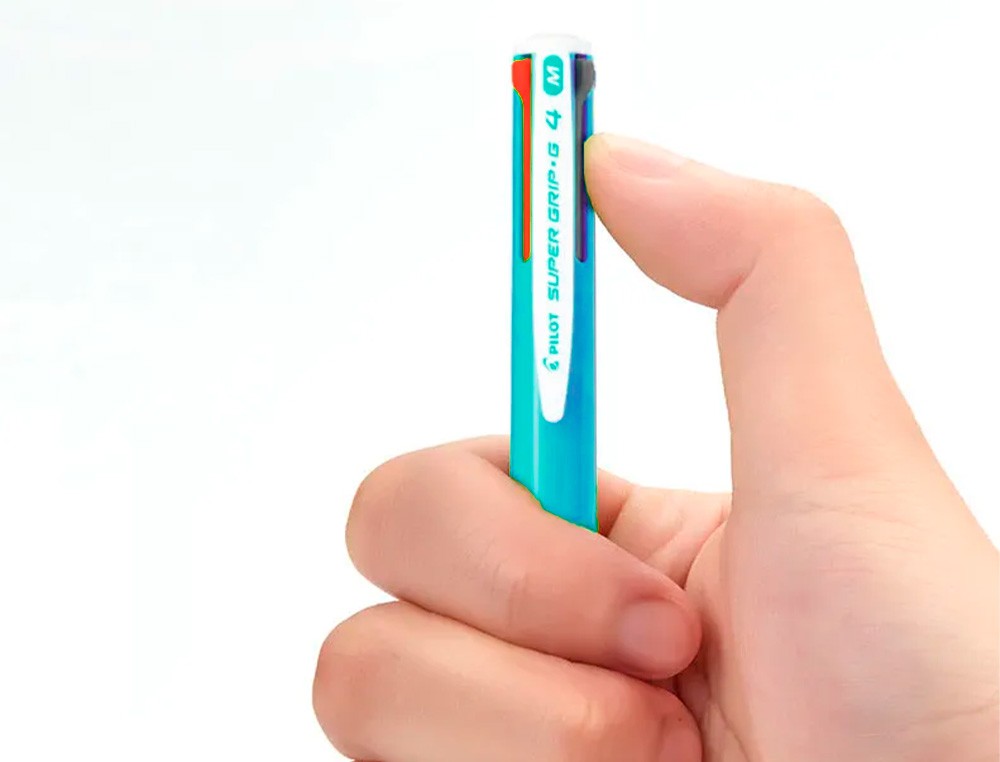 Boligrafo pilot super grip g 4 colores retractil sujecion de caucho tinta base de aceite cuerpo color azul