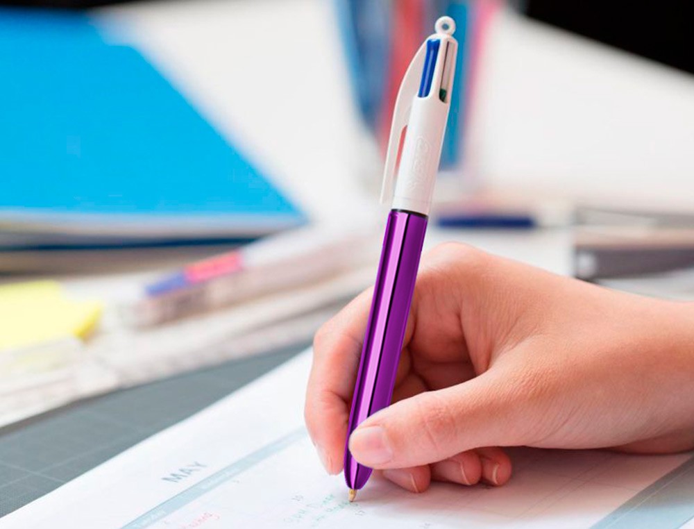 Boligrafo bic cuatro colores shine morado punta de 1 mm
