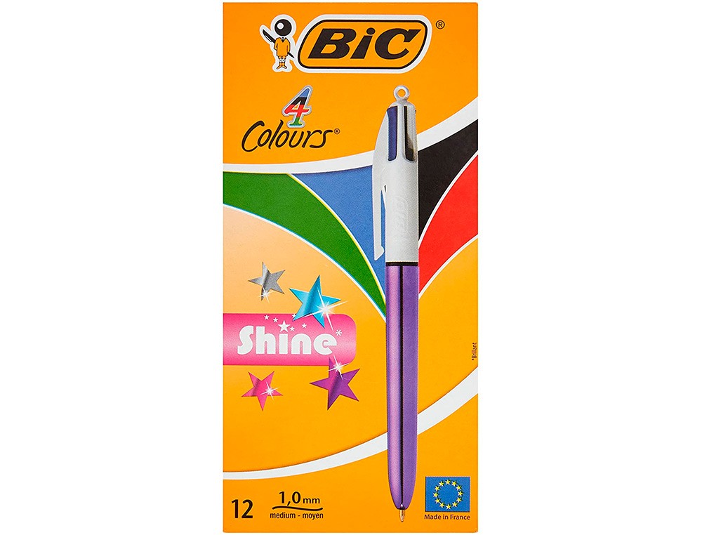 Boligrafo bic cuatro colores shine morado punta...