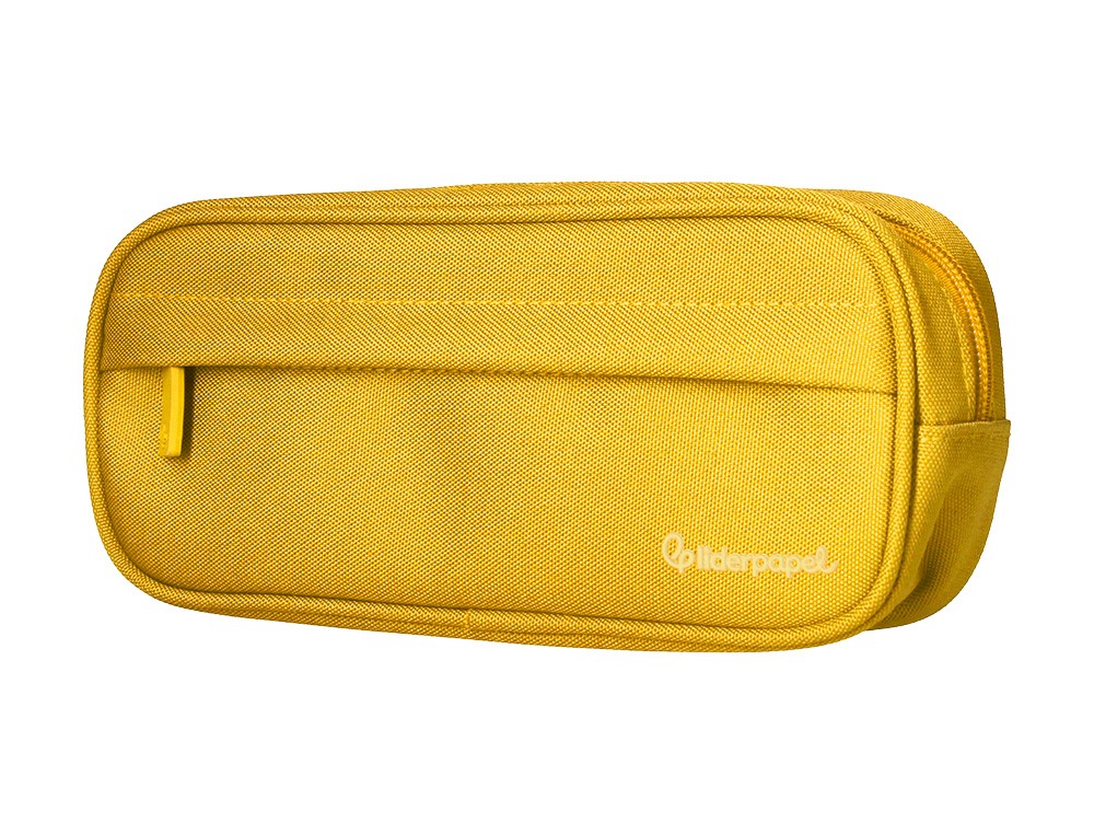 Estuche portatodo liderpapel classic ovalado 2 cremalleras con bolsillo delantero 210x90mm amarillo