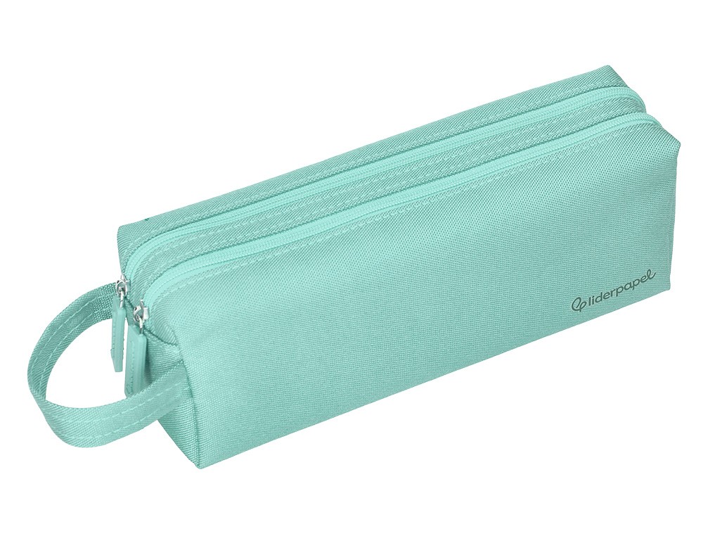 Estuche portatodo liderpapel classic rectangular con asa 2 cremalleras 210 x80mm verde manzana