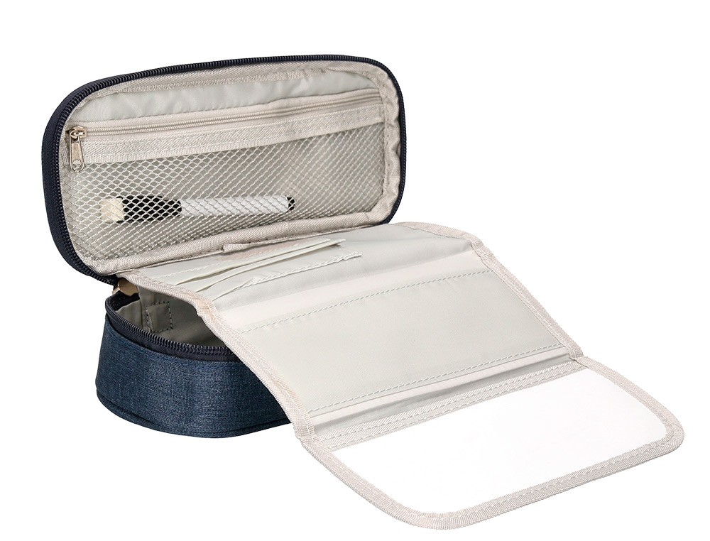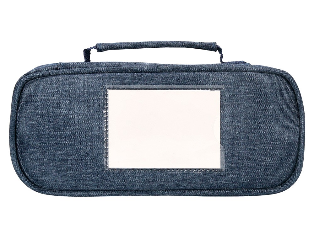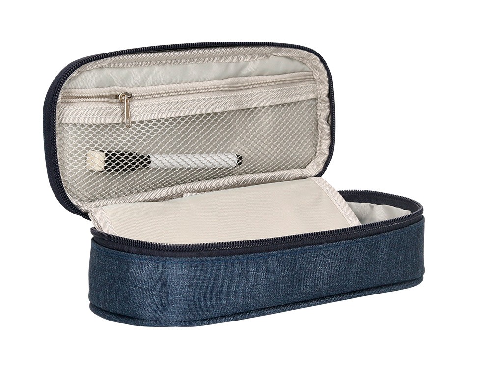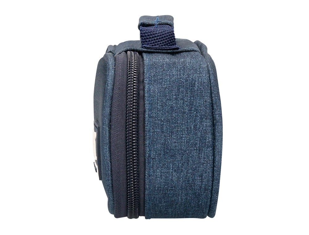 Bolso escolar portatodo ovalado con diseño de gran capacidad. Contiene un organizador interior con bolsillos para bolígrafos, malla con cremallera interior, amplio departamento multifuncional, bolígrafo borrable con pizarra para anotaciones. Etiqueta exterior impermeable para tarjeta con nombre. Colores: azul, negro y rosa. Medidas: 220 x 60 x 90 mm.