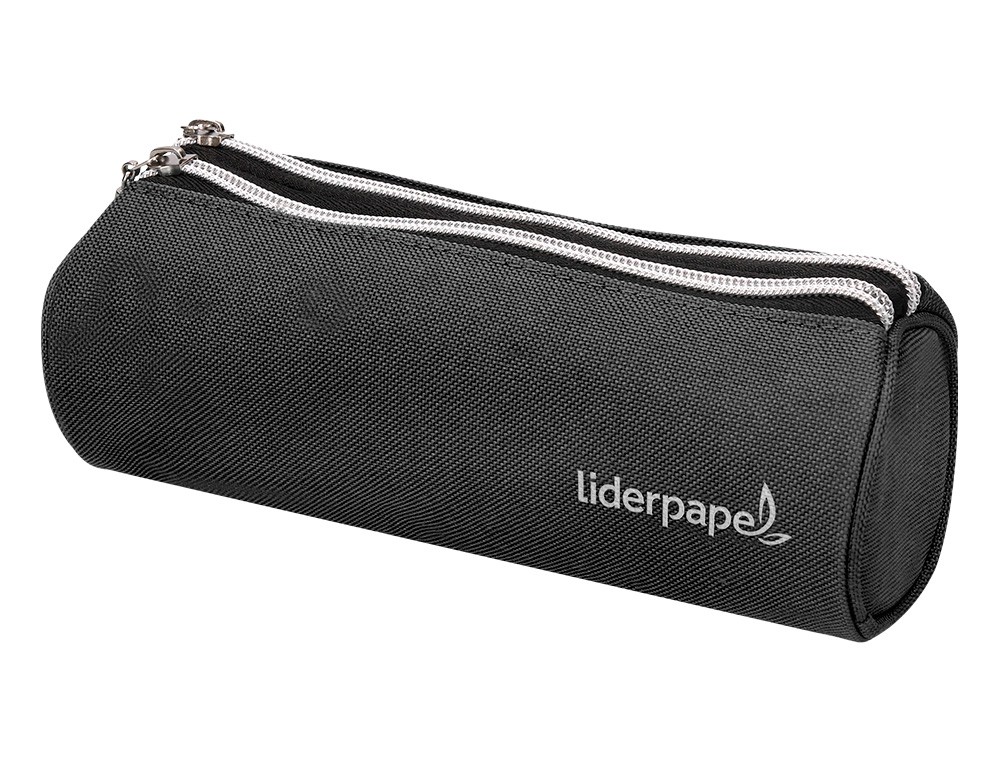 Estuche portatodo liderpapel cilindrico con 2 cremalleras negro 205x75x75 mm