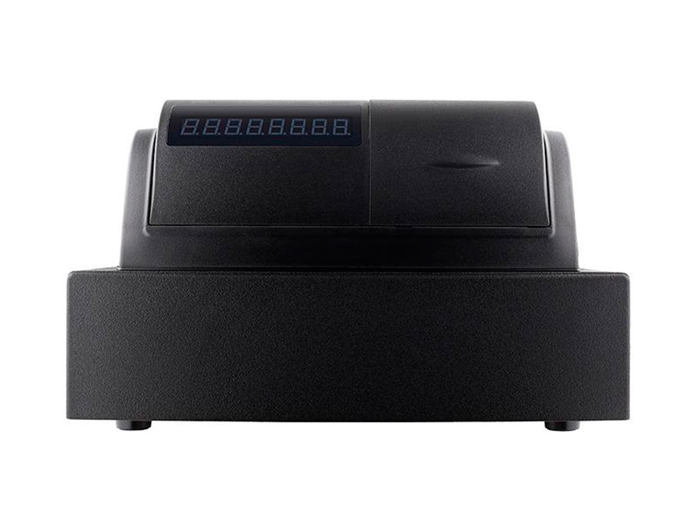 Caja Registradora alfanumérica de tamaño compacto. Doble display, uno paraoperador y otro para cliente. Rápida impresora térmica 57 mm. Programació n encabezado y pie ticket con nombre establecimiento. Texto descriptivo artículo en ticket. Visualización importe a devolver como cambio. Diario electrónico hasta 2000 líneas. Hasta 500 PLUS (artículos con descripción y precio). 16 departamentos de acceso directo. Cajón compacto: 4 monedas y 4 billetes. Desglose hasta 4 tipos IVA distintos en ticket. Conforme normativa factura simplificada y ley antifraude.