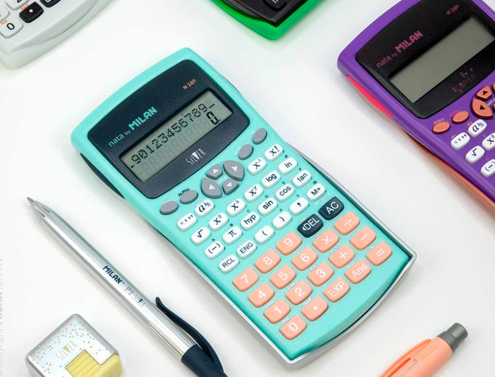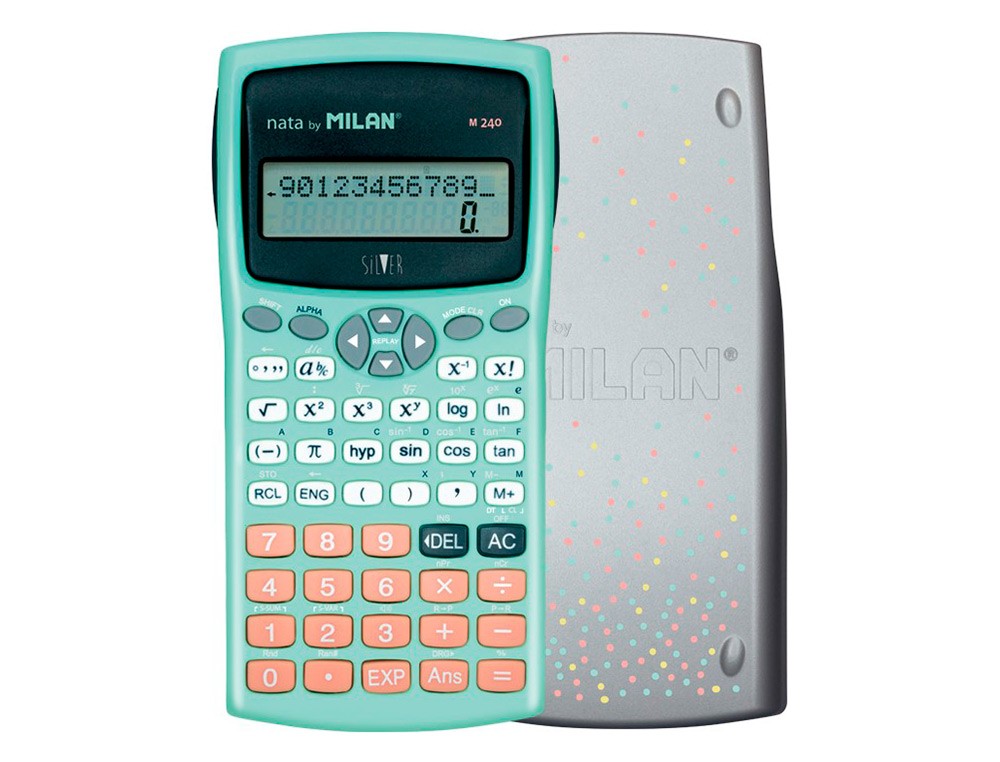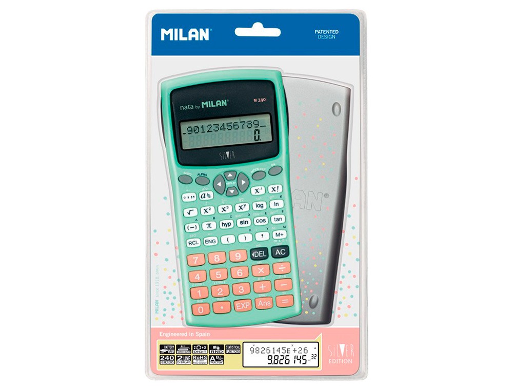 Calculadora milan cientifica m240 silver 2 lineas 240 funciones 10+2 digitos color verde turquesa con tapa color