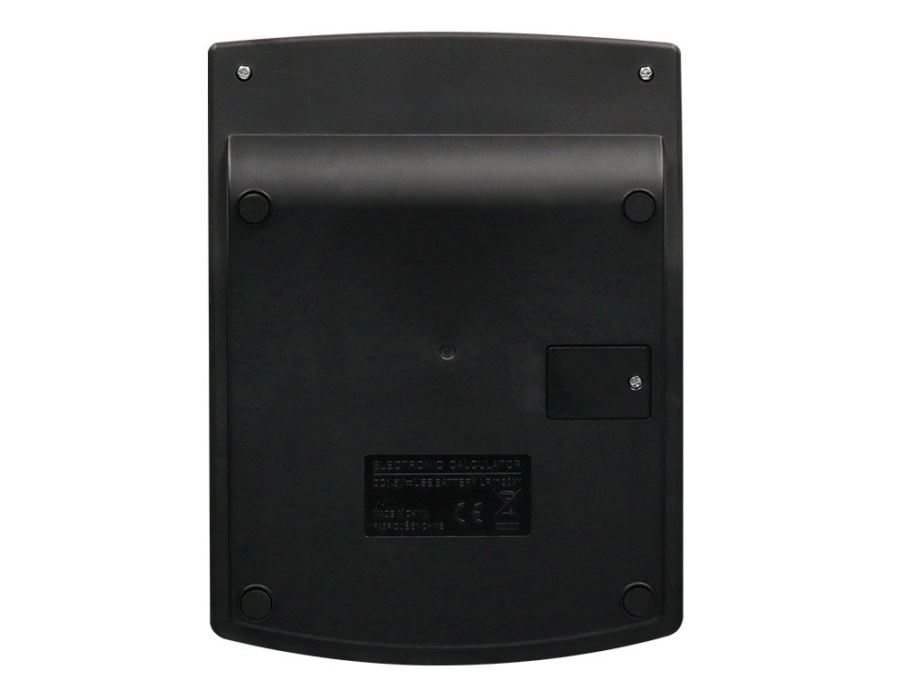 Calculadora de sobremesa de 12 dígitos. Teclas de encendido y apagado. Funciones de tasas y ratio, redondeo decimal, posición decimal, función GT. Tecla doble cero y de corrección de entrada. Solar y a pilas. Funciona con pilas LR1130. Color negro. Medidas: 155 x 115 x 25 mm. Peso: 265 g.