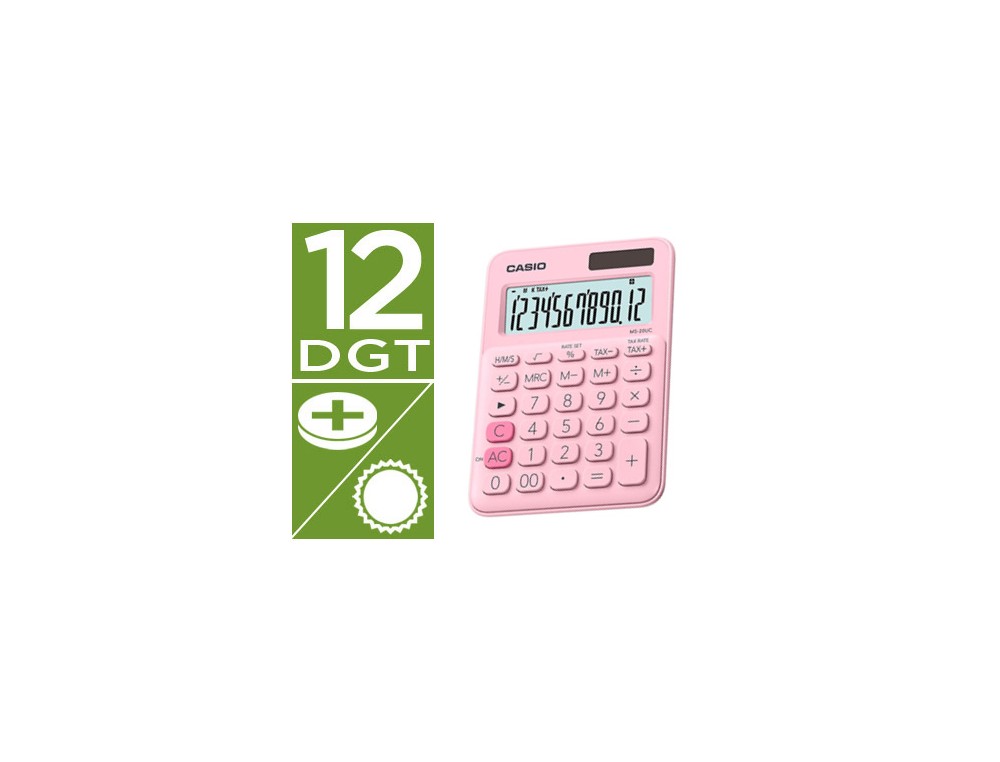 Calculadora casio ms-20uc-pk sobremesa 12 digitos tax +/- color rosa