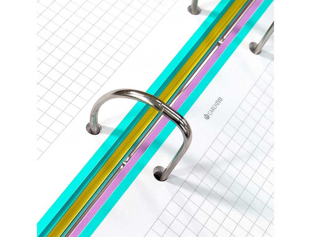 EL CARPEBLOCK 360º DE POLIPROPILENO FOAM DE CARCHIVO® ES EXTRA RÍGIDO Y ULTRA LIGERO, CON UN GROSOR DE 2 MM. EQUIPADO CON 4 ANILLAS MIXTAS DE 35 MM Y SISTEMA RADO, SU LOMO CURVO ERGONÓMICO PERMITE UNA APERTURA DE 360º. INCLUYE EL RECAMBIO BONUS DE 100 HOJAS CUADRICULADAS 5X5 DE 90 G/M² CON ORGANIZADOR DE CARCHIVO, UN SOBRE DE POLIPROPILENO CON SOLAPA Y CIERRE DE VELCRO PARA PEQUEÑOS OBJETOS. ADEMÁS, CUENTA CON GOMA PLANA A JUEGO Y 4 SEPARADORES. CARACTERÍSTICAS: MATERIAL: POLIPROPILENO FOAM 2 MM ANILLAS: 4 MIXTAS DE 35 MM EXTRAS: SOBRE DE PP, RECAMBIO DE 100 HOJAS, 4 SEPARADORES CIERRE: GOMA PLANA TAMAÑO: A4
