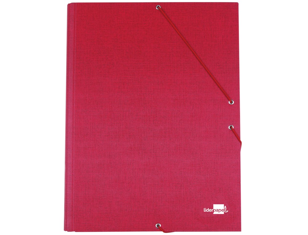Carpeta liderpapel gomas folio 3 solapas carton forrado roja