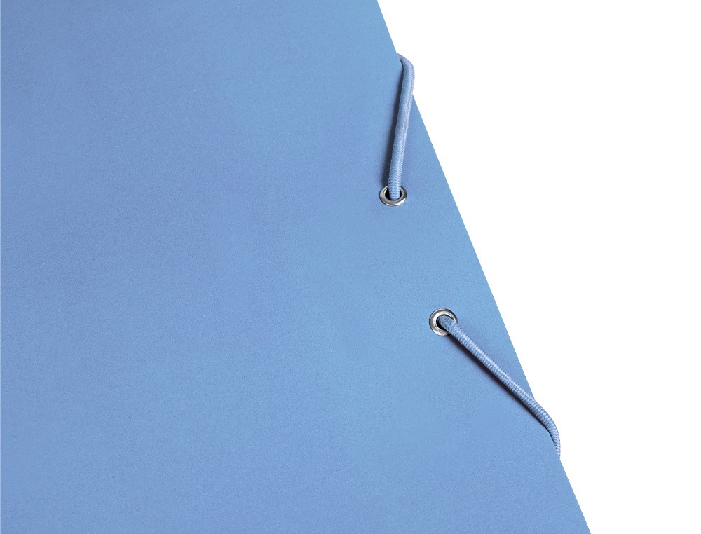 Carpeta de gomas fabricada en cartón plastificado de 600 g/m². Cierre con gomas. Con tres solapas. Tamaño folio. Colores surtidos: amarillo, azul, negro, rojo y verde.