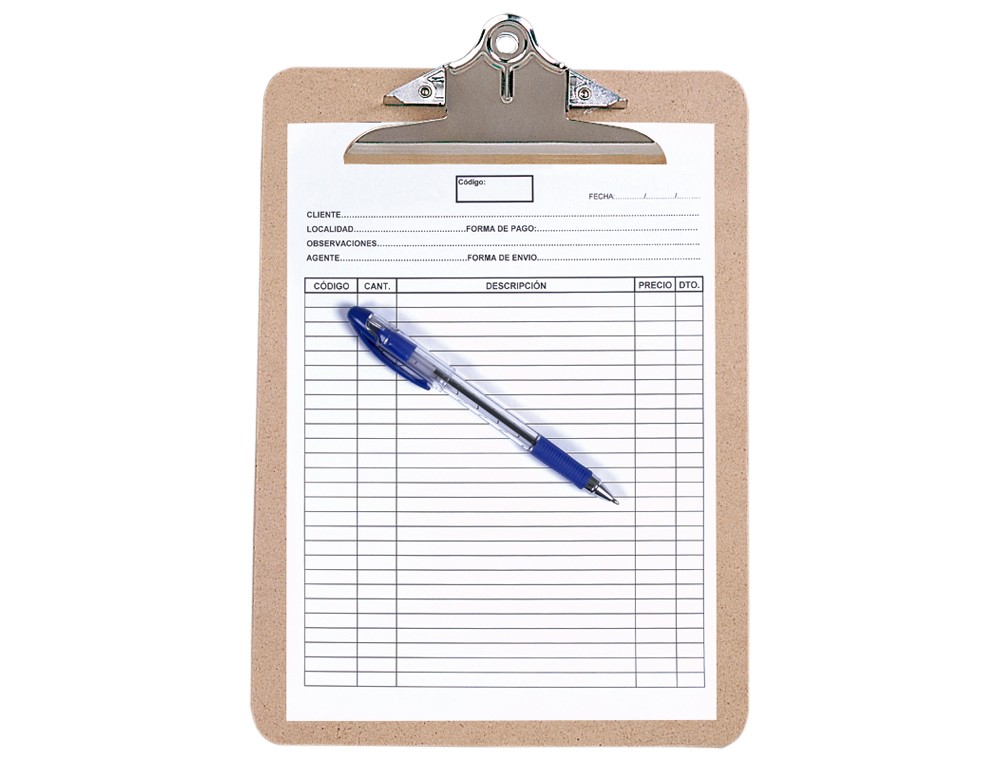 Fabricado en cartón extraduro, con pinza metálica de 150 mm. Superficie lisa que facilita la escritura. Color marrón. Formato DIN A4 y DIN A3.