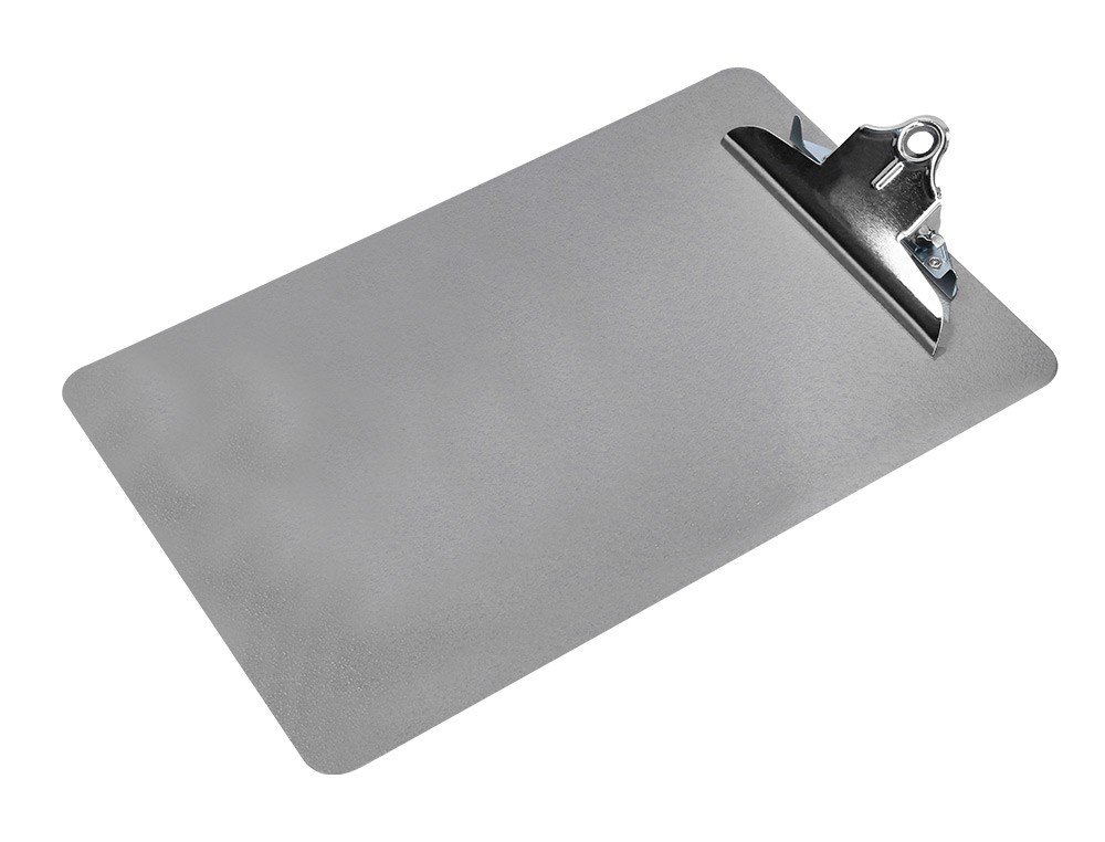 Fabricado en metal extraduro, con pinza metálica de 150 mm de gran resistencia para una perfecta sujeción del papel. Superficie lisa que facilita la escritura. Color gris metálico. Formato DIN A4.
