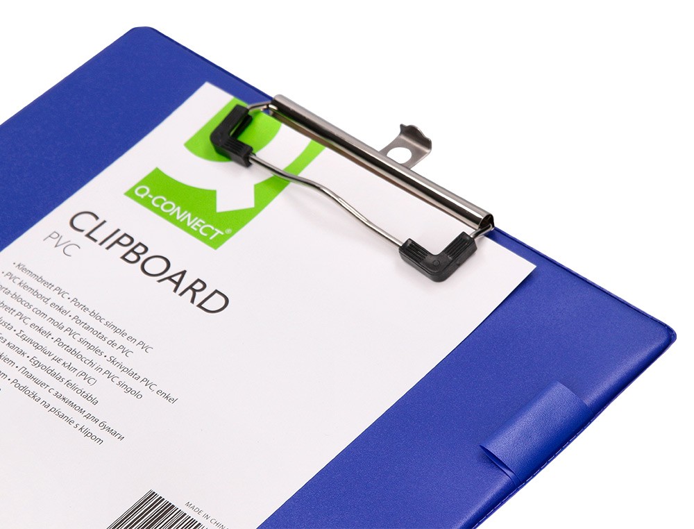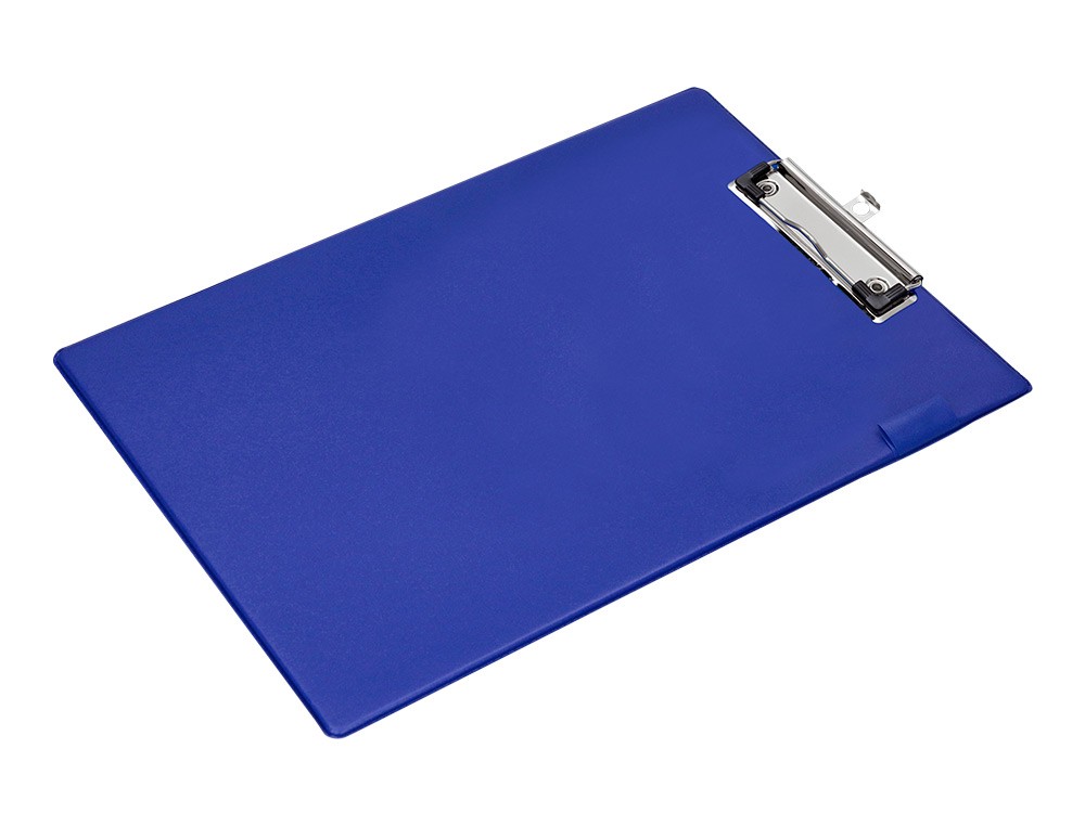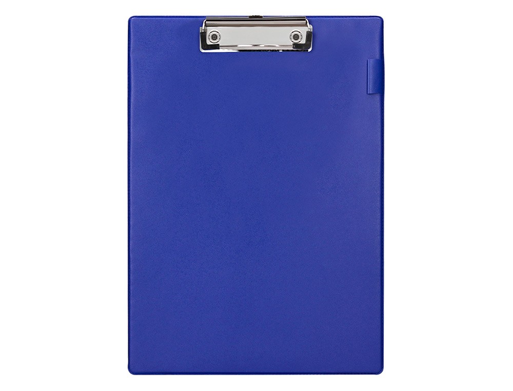 Fabricado en cartón forrado en plástico soldado. Con presilla portafolios metálica de gran resistencia para una perfecta sujeción del papel. Con presilla portabolígrafos. Para DIN A4 y folio. Color azul. Medidas: 220 x 310 mm.