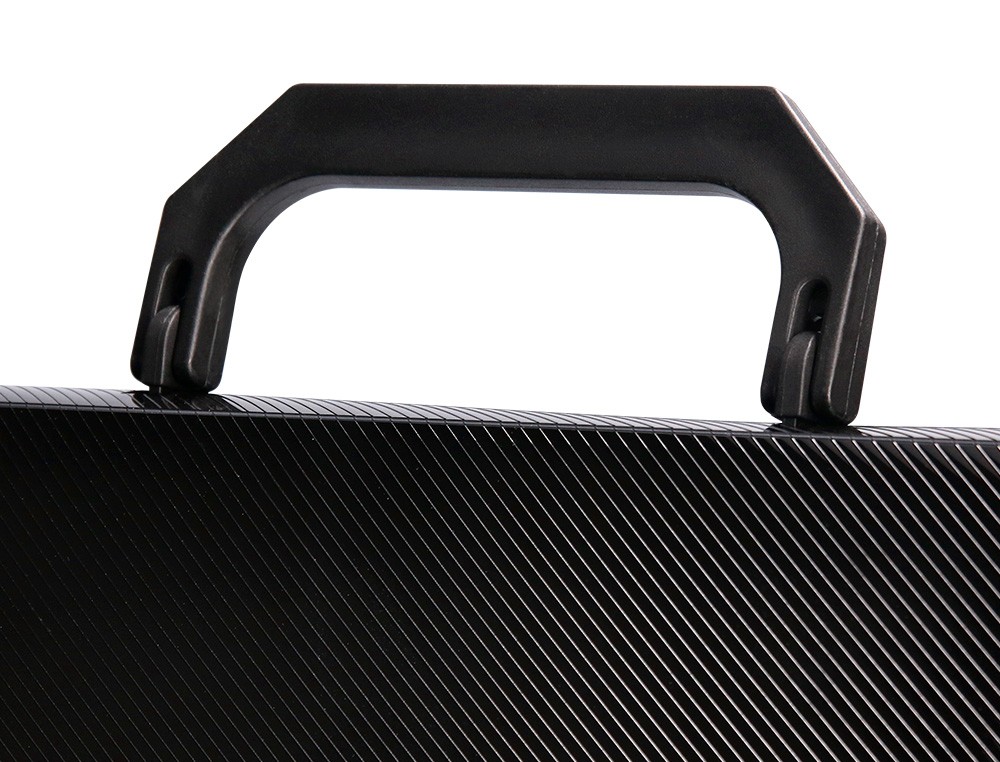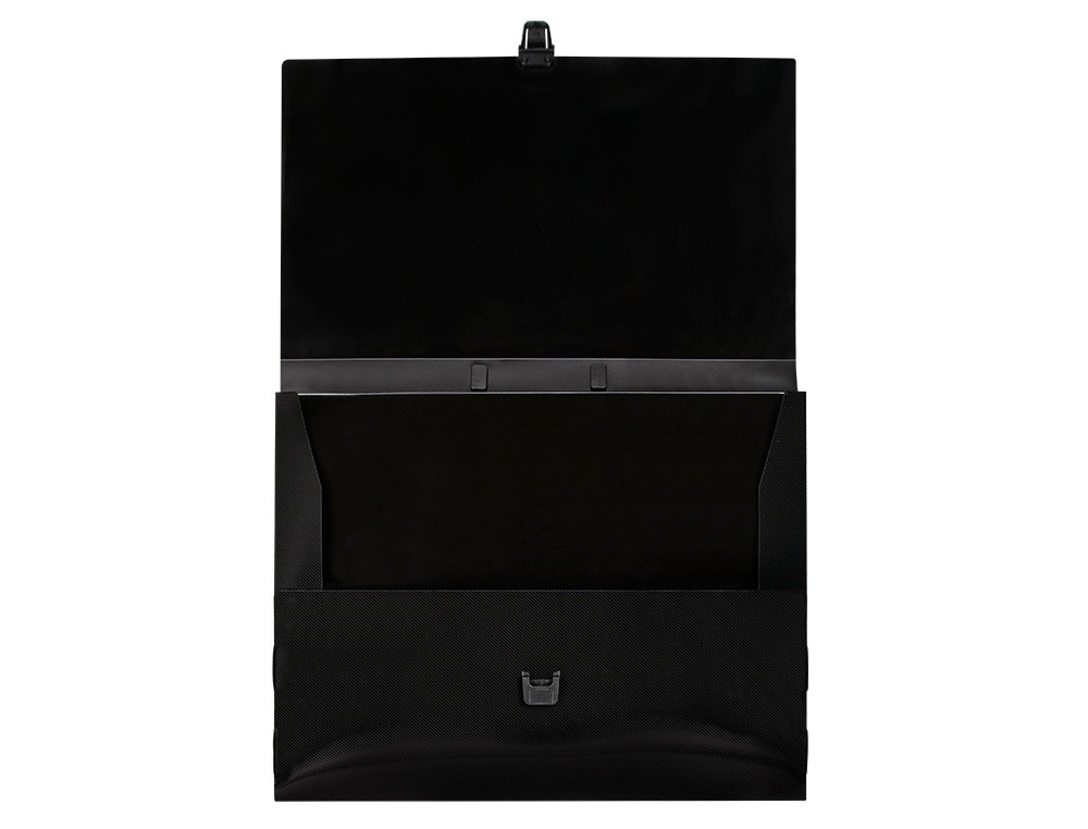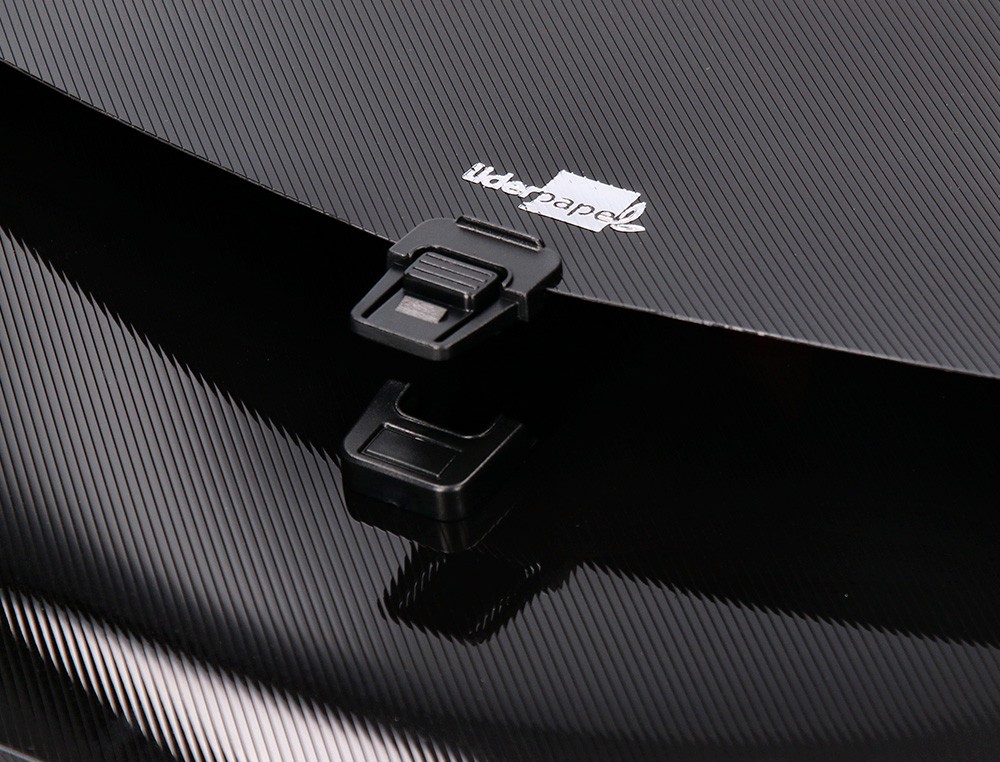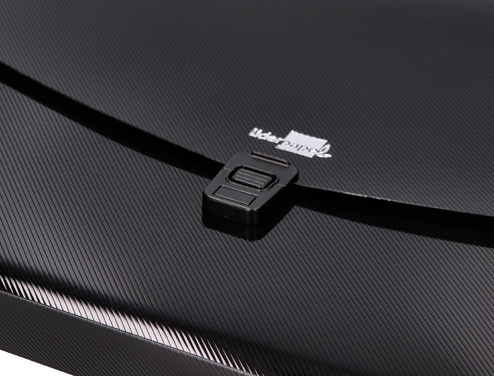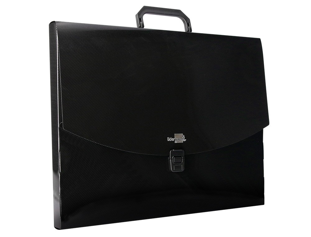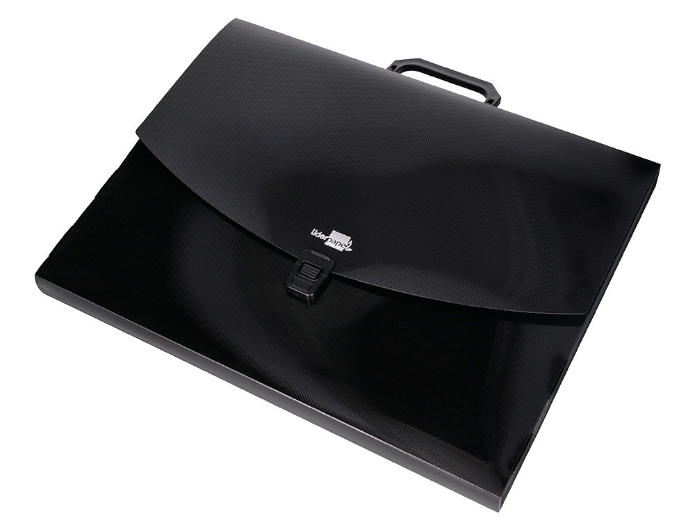Fabricada en polipropileno. Con asas de plástico y broche. Ideal para dibujo y diseño gráfico. 1000 micras. Lomo de 35 mm. Color negro. Formato DIN A3.